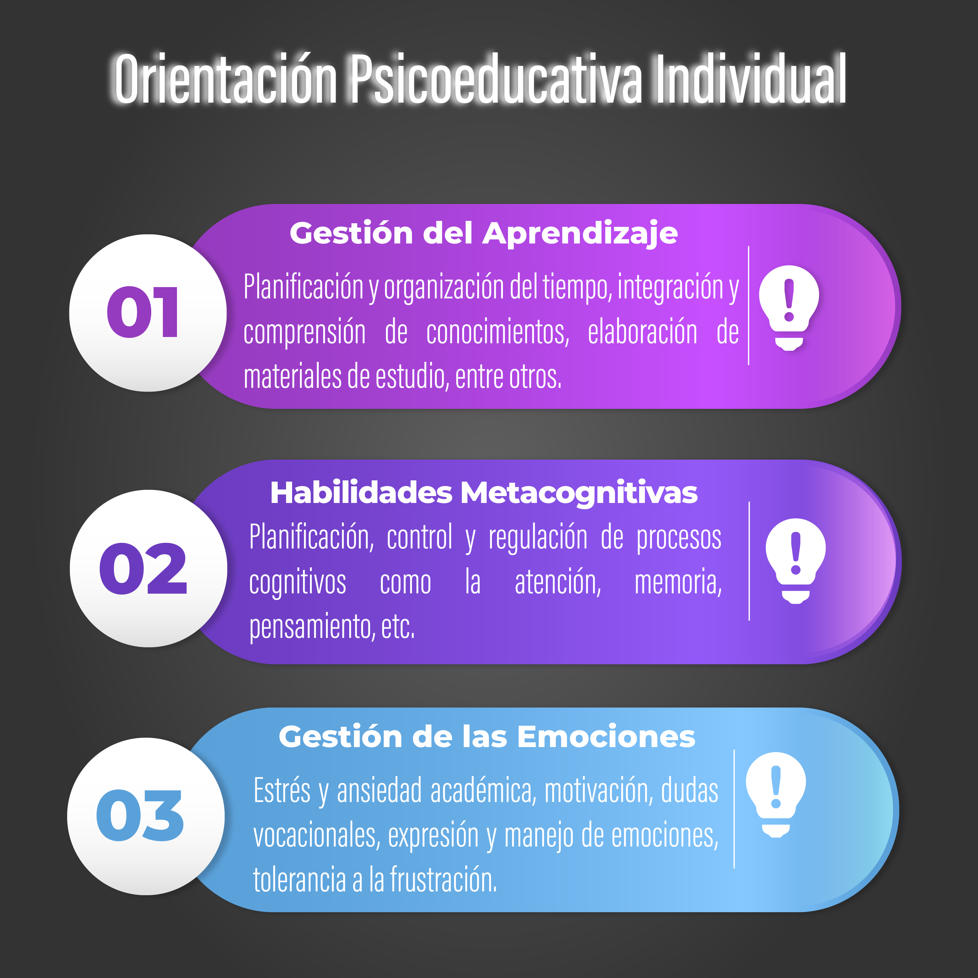 El Centro de Enseñanza Aprendizaje les invita a ser parte del Programa de Orientación Psicoeducativa Individual, en donde podrán fortalecer las áreas que estimen necesarias para obtener un mejor desempeño académico.