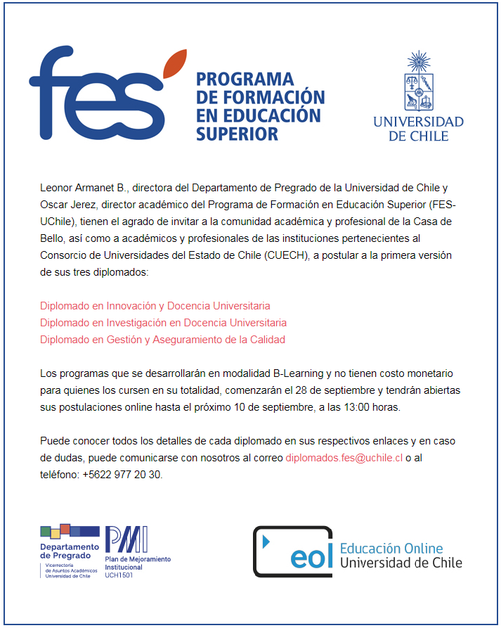 - Cualquier consulta, dirigirla a través de plataforma.uchile.cl