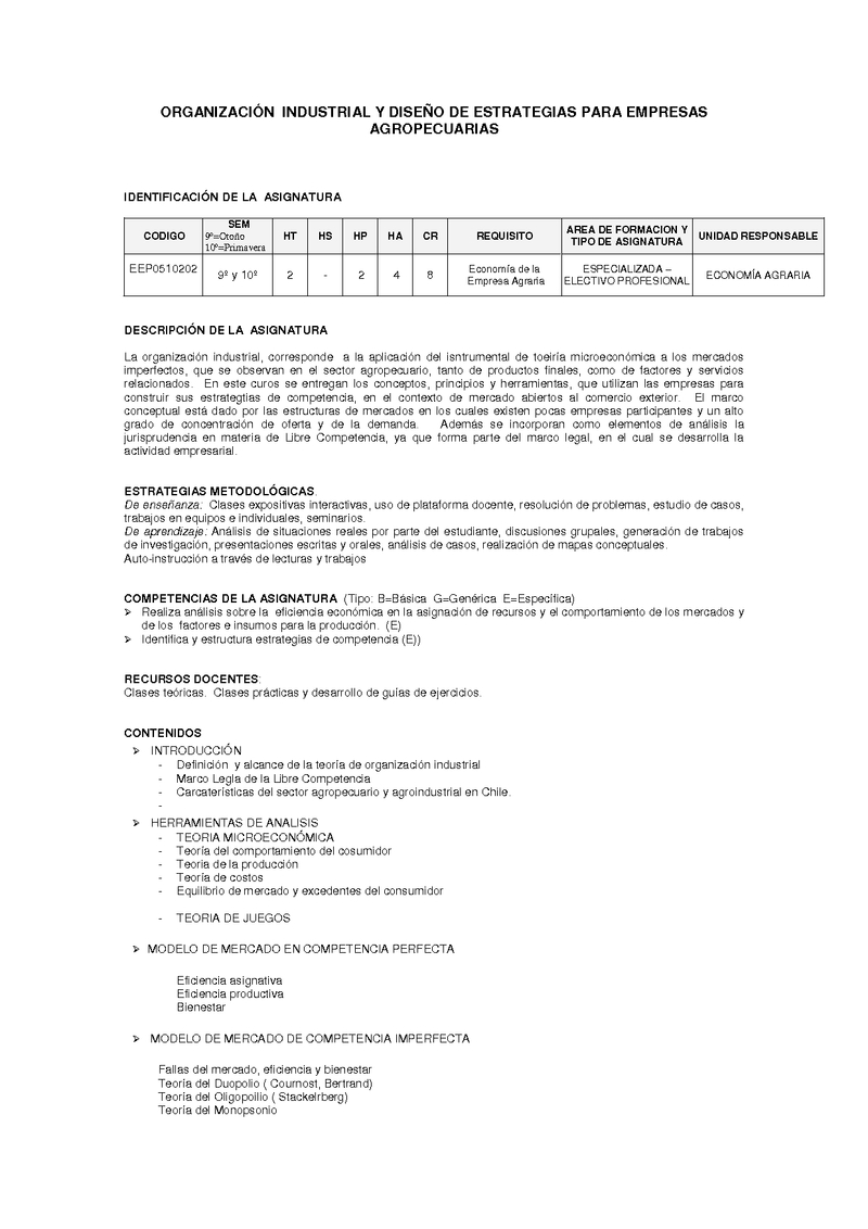 EEP0510202-1 Organización Industrial y Diseño de Estrategias para Empresas Agropecuarias 2011, Segundo Semestre