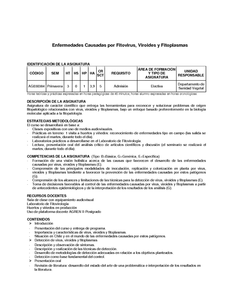 AG030384-1 P--Enfermedades Causadas por Fitovirus, Viroides y Fitoplasmas 2016, Segundo Semestre