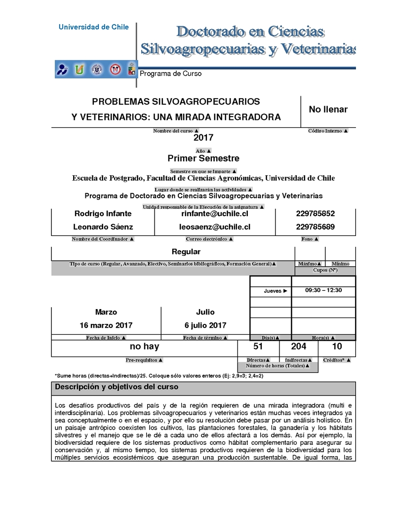 AG100400-2 D1-Problemas Silvoagropecuarios y Veterinarios: Una Mirada Integradora 2017, Primer Semestre
