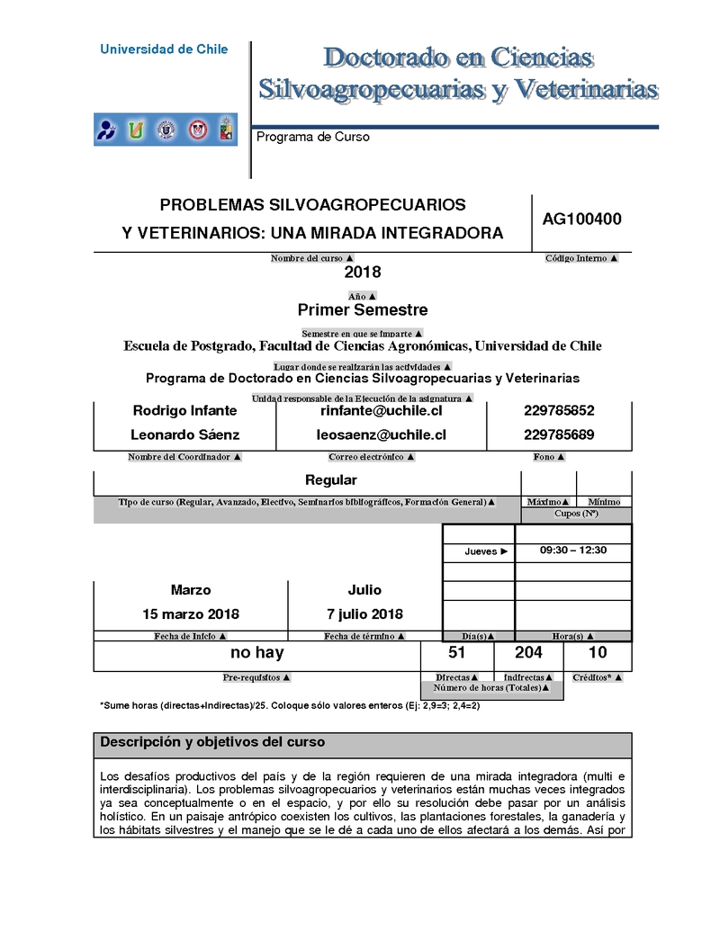 AG100400-2 D1-Problemas Silvoagropecuarios y Veterinarios: Una Mirada Integradora 2018, Primer Semestre