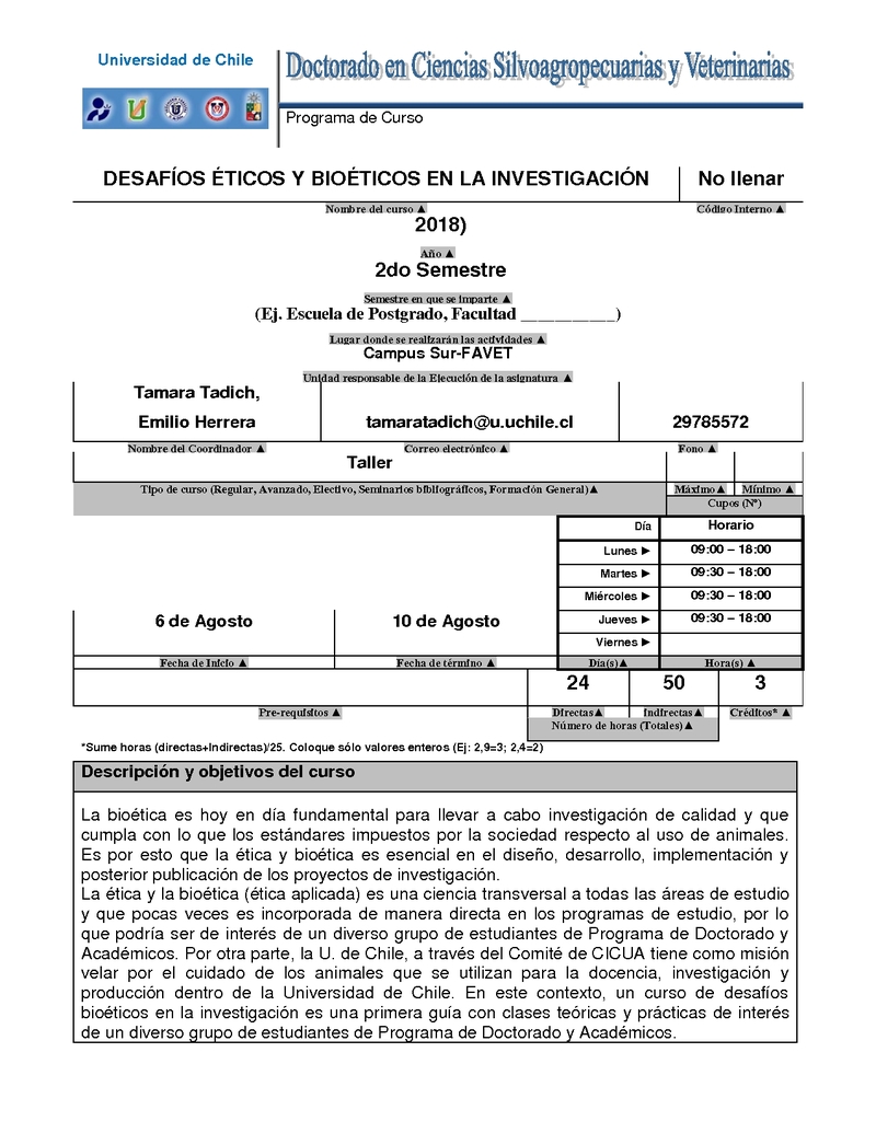 AG108168-1 D1-Desafíos Éticos y Bioéticos en la Investigación 2018, Segundo Semestre