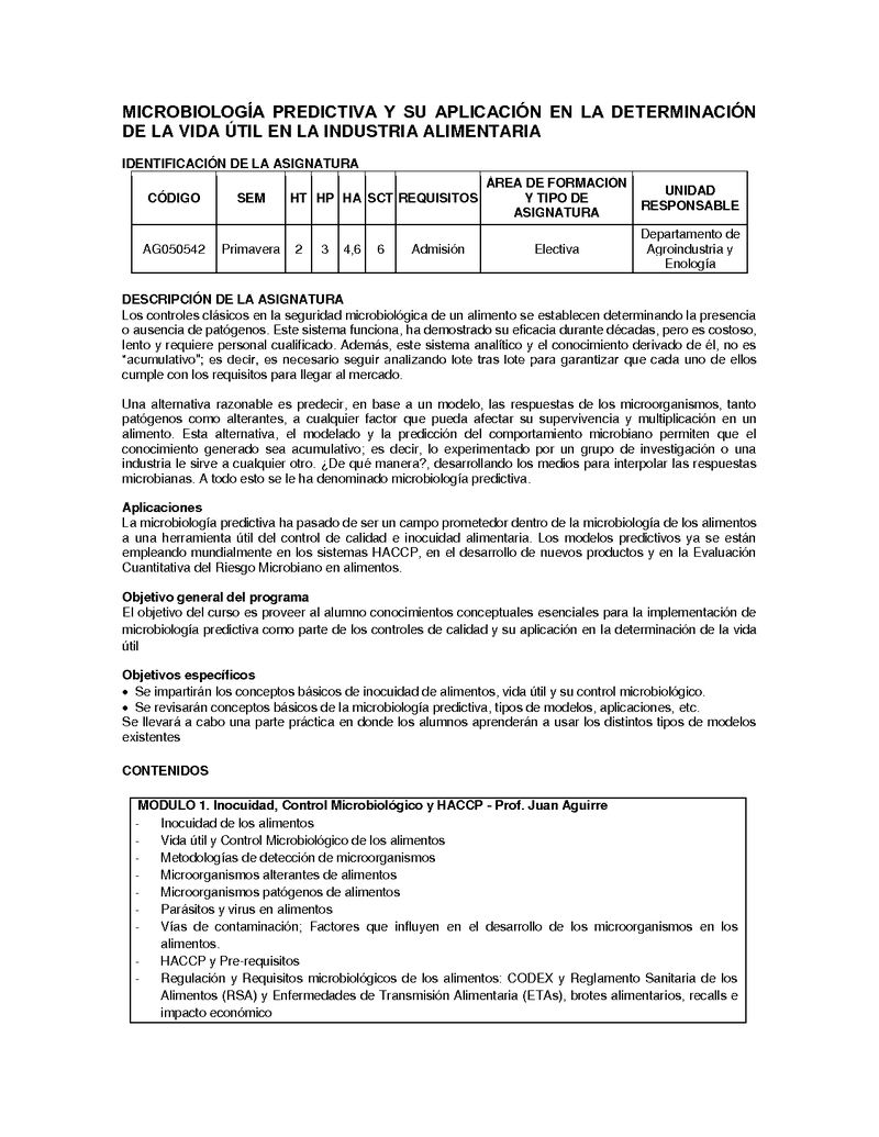 AG050542-1 P--Microbiología Predictiva y su Aplicación en la Determinación de la Vida Útil en la Industria Alimentaria 2019, Segundo Semestre