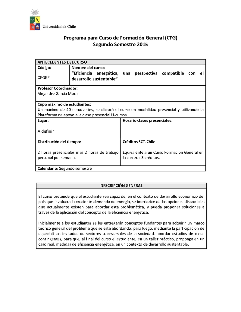 CFGEFI-1 Eficiencia Energética una Perspectiva Compatible con el Desarrollo Sustentable 2019, Segundo Semestre