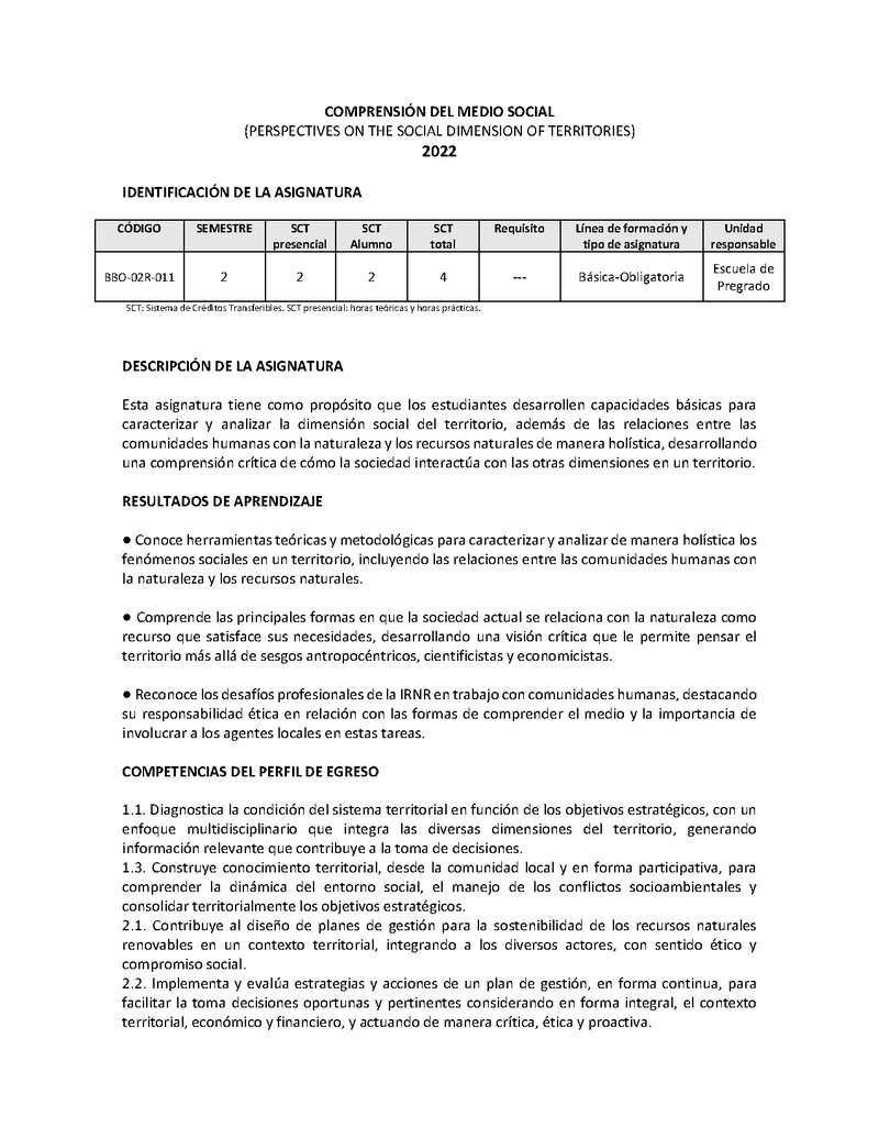 | Descripción | Última versión actualizada del programa del curso Comprensión del medio social, agosto de 2022. | |