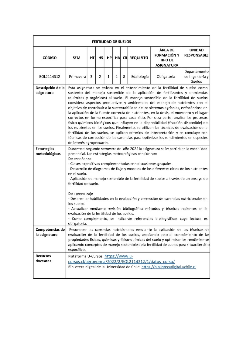 | Descripción | Programa curso de Fertilidad de Suelos segundo semestre 2022. | |