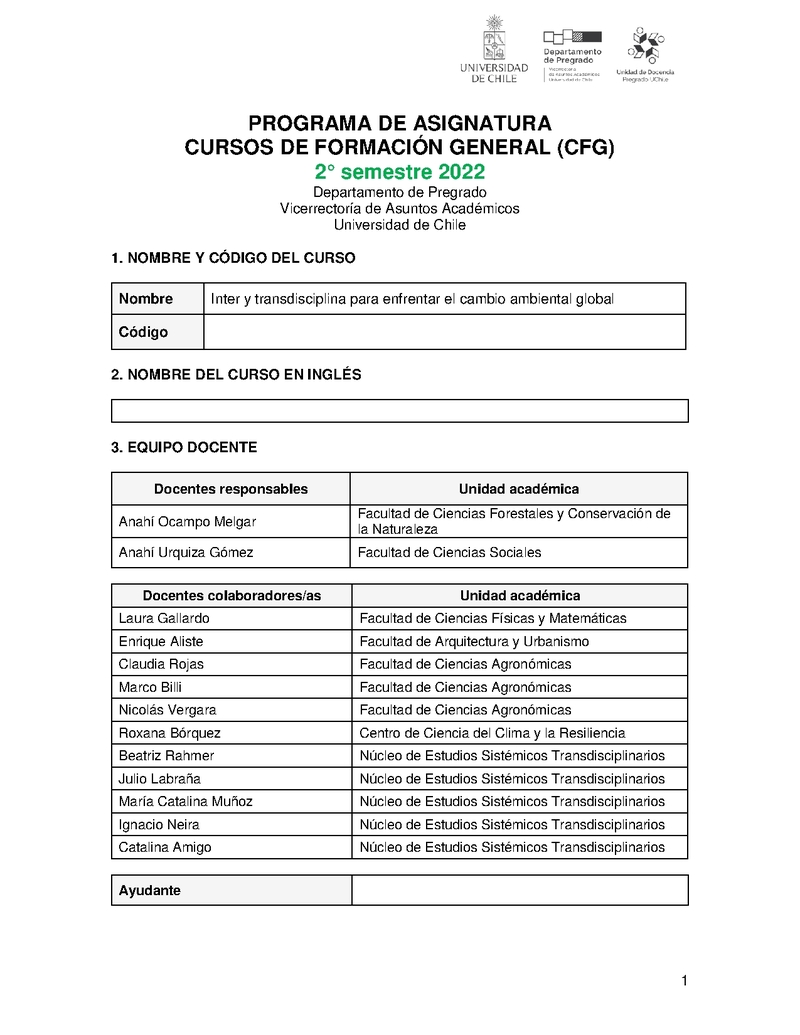 VA-01-0327-122-1 Inter y Transdisciplina para Enfrentar el Cambio Ambiental Global 2022, Segundo Semestre