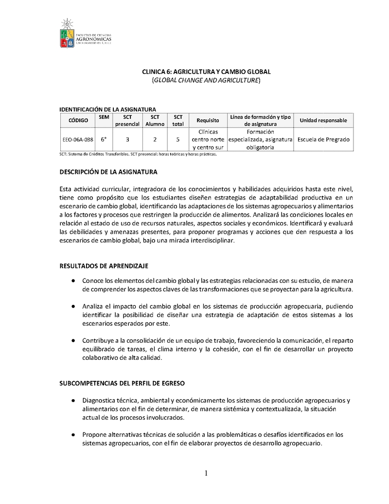 | Descripción | Programa del curso Clínica 6: Agricultura y Cambio Global | |
