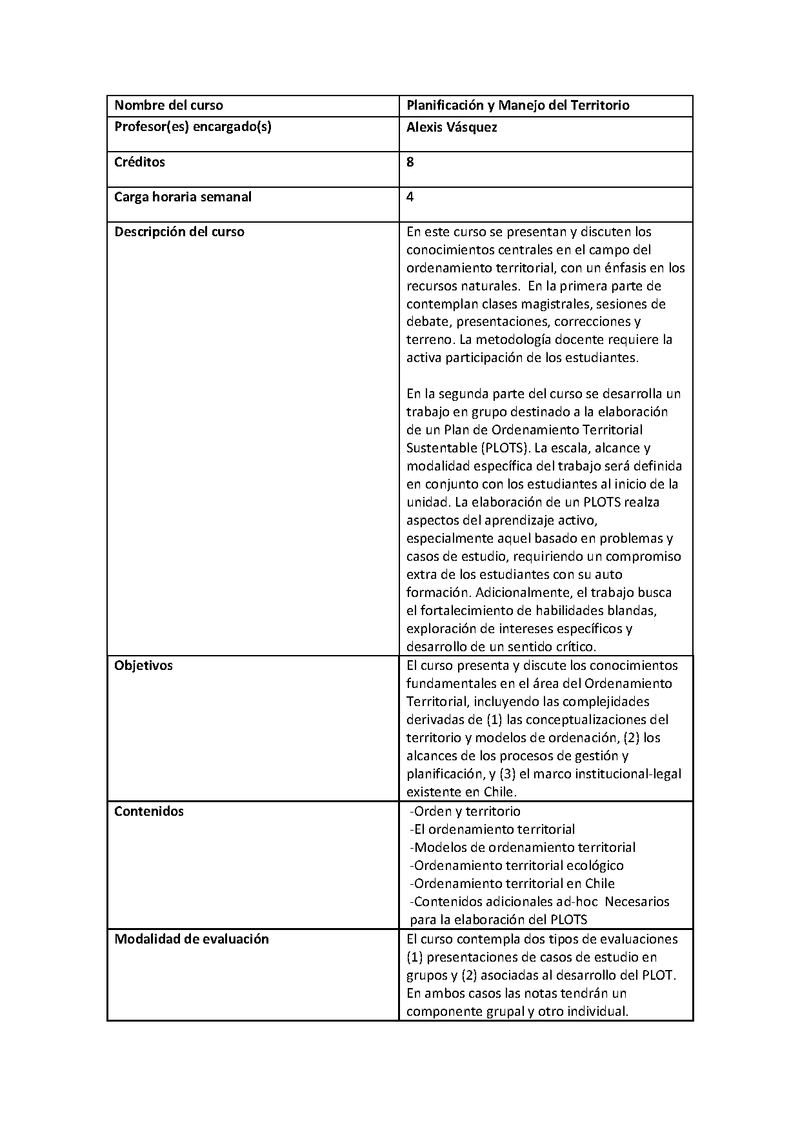 AG070521-1 P--Planificación y Manejo Territorial de Recursos Naturales 2025, Segundo Semestre