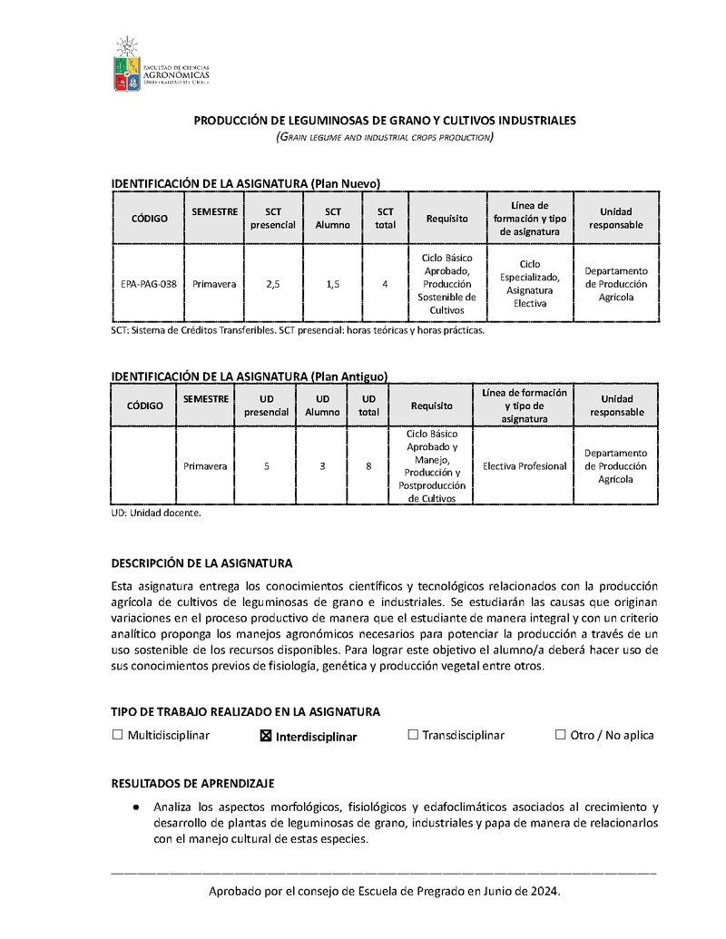 EPA-PAG-038-1 Producción de Leguminosas de Grano y Cultivos Industriales 2025, Segundo Semestre