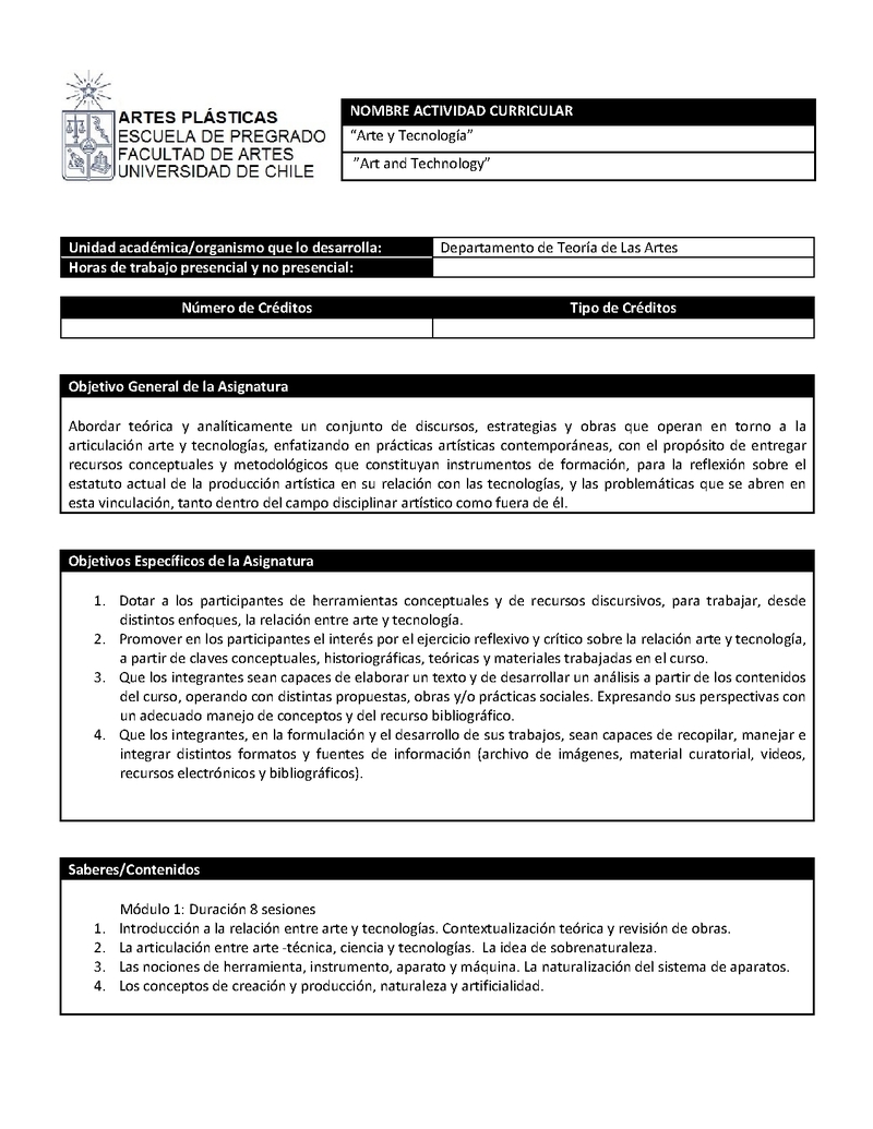 Institución Facultad de Artes Facultad de Artes