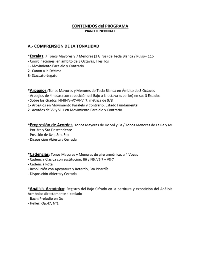 | Descripción | Contenidos del Programa: A.- Comprensión de la Tonalidad B.- Lectura C.- Aspectos Mecánicos y Técnicos * Evaluaciones |