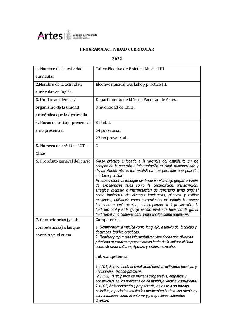 | Descripción | Programa Taller Práctica Musical III - Música Chilena - Música Popular | |