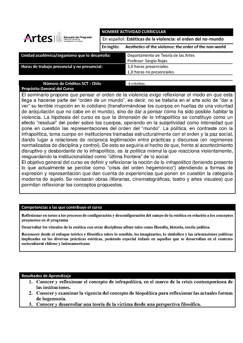 SEMI471-025-1 Seminario: Estéticas de la violencia: el orden del No-mundo 2022, Segundo Semestre