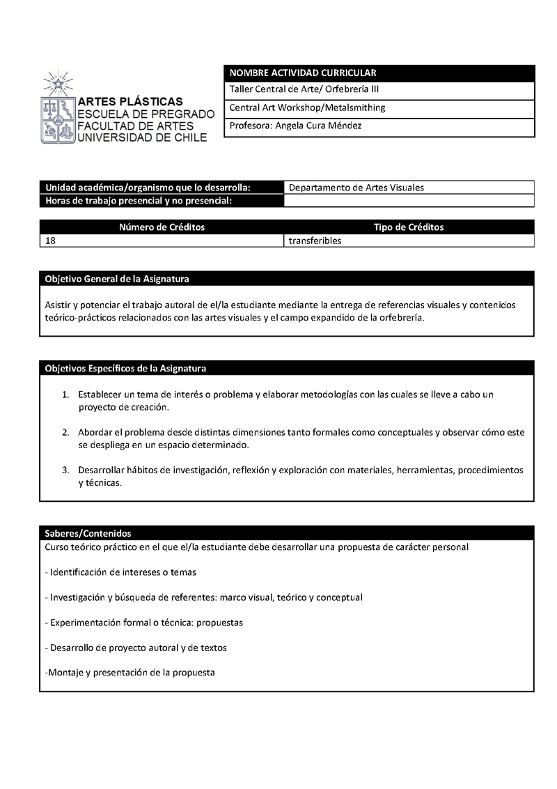 | Descripción | Programa Taller Central III | |