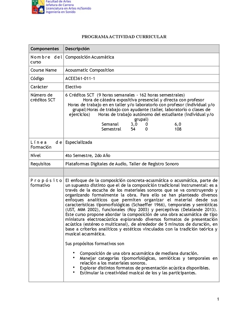 | Descripción | Programa curso composición acusmática, 2do semestre 2023 | |