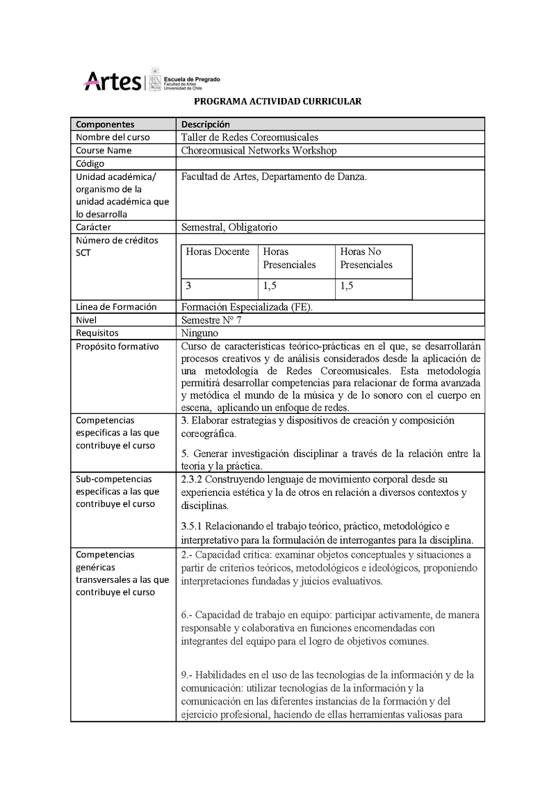 ELEC232-007-1 Electivo Interpretación: Interpretación, Taller de Redes Coreomusicales. 2023, Segundo Semestre