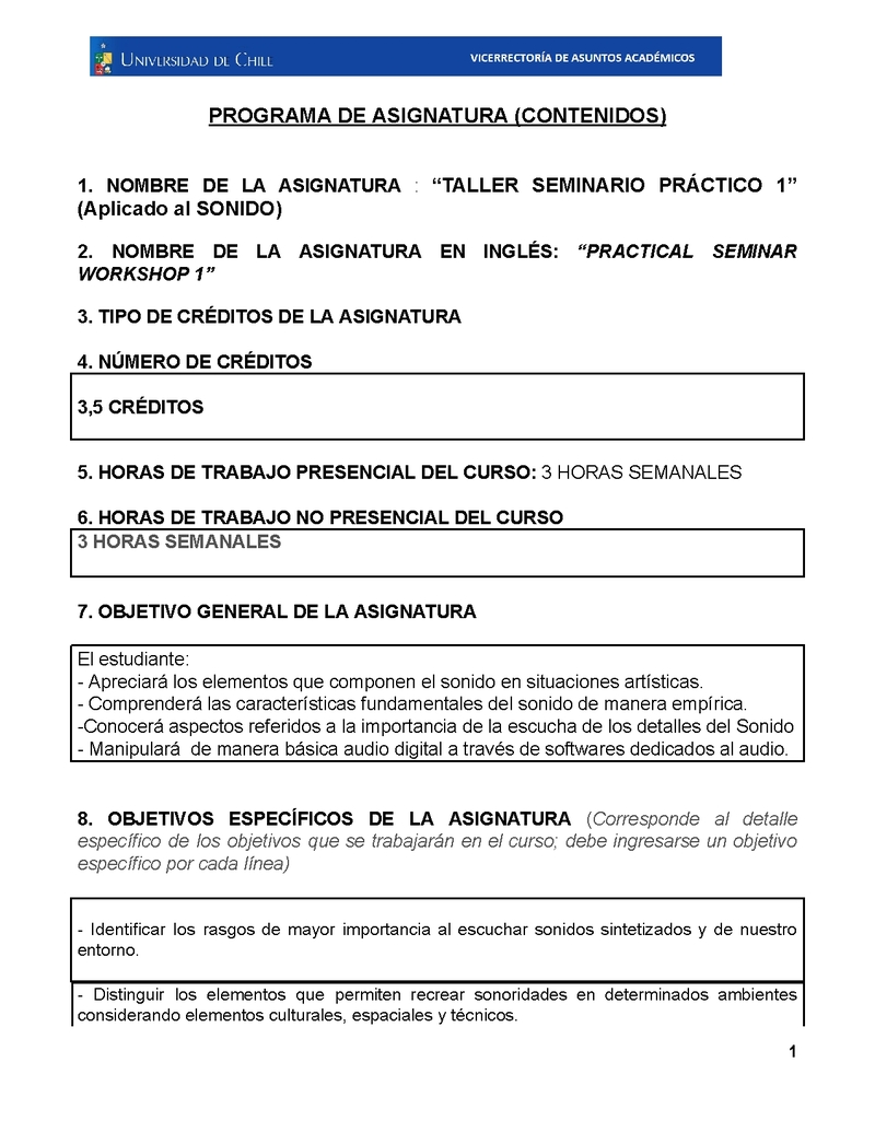 | Descripción | OBJETIVOS DEL CURSO: El estudiante: - Apreciará los elementos que componen el sonido en situaciones artísticas. - Comprenderá las características fundamentales del sonido de manera empírica. -Conocerá aspectos referidos a la importancia de la "escucha de los detalles" del Sonido - Manipulará, de manera básica, audio digital a través de softwares dedicados al audio. |