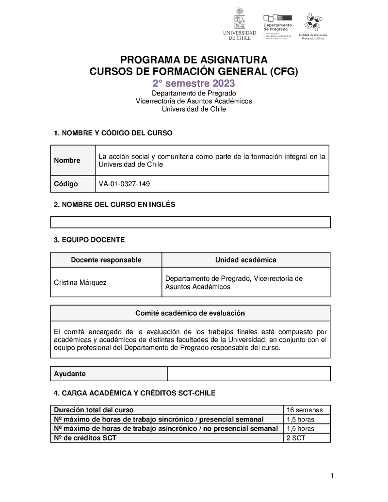VA-01-0327-149-1 La acción social y comunitaria como parte de la formación integral en la Universidad de Chile 2023, Segundo Semestre