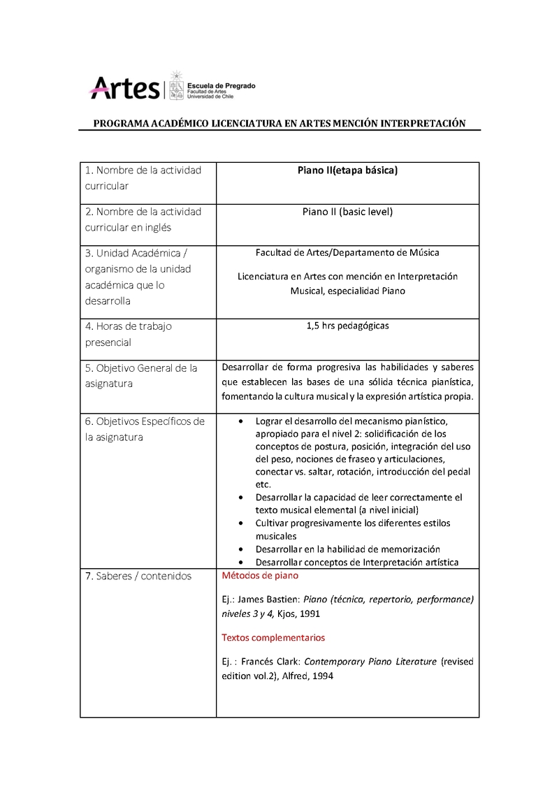 | Descripción | Programa de estudio y evaluaciones, 2º año básico de piano. | |