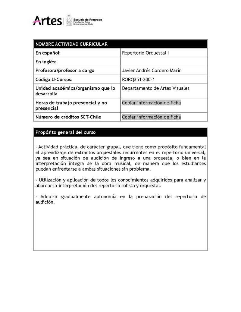 | Descripción | Programa Repertorio Orquestal I Contrabajo | |