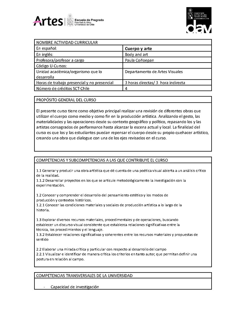 Institución Facultad de Artes Facultad de Artes