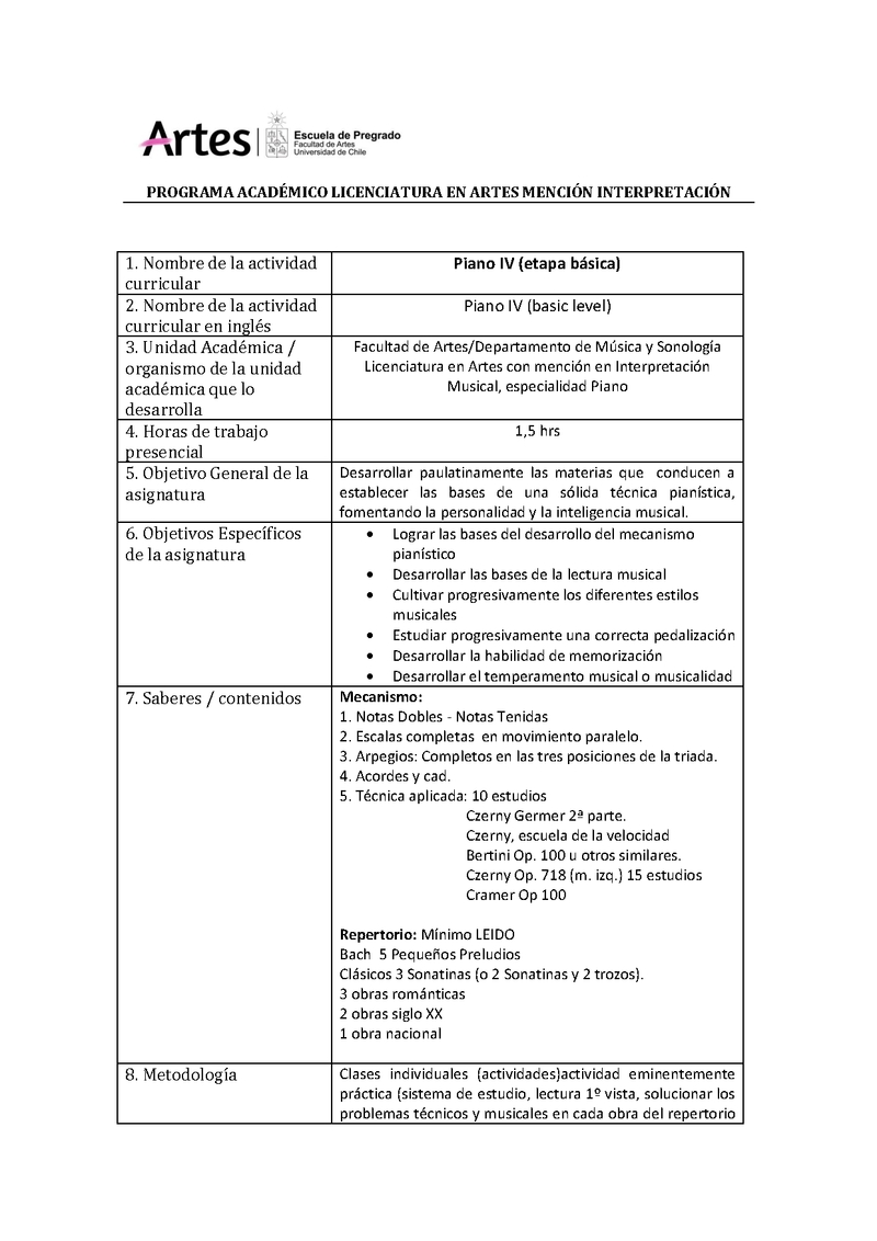 Institución Facultad de Artes Facultad de Artes