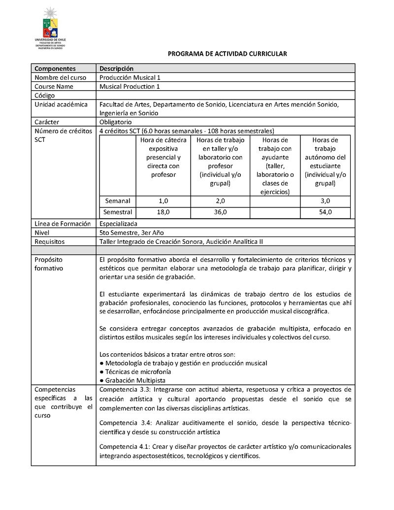 | Descripción | Programa de Asignatura Producción Musical 1 | |