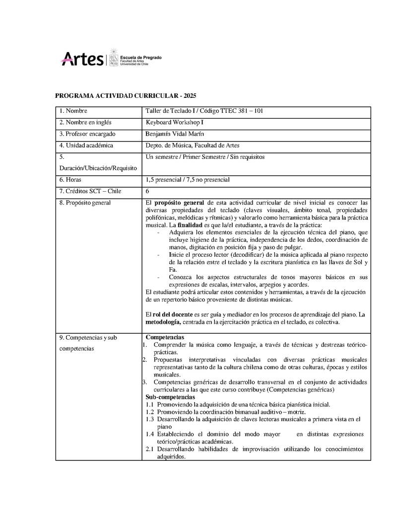 | Descripción | Se adjunta Programa de Teclado I año 2025 | |