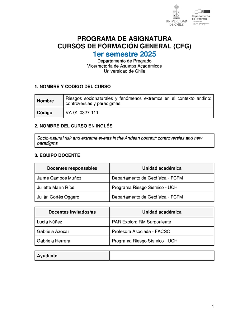 VA-01-0327-111-1 Riesgos socionaturales y fenómenos extremos en el contexto andino: controversias y nuevos paradigmas 2025, Primer Semestre