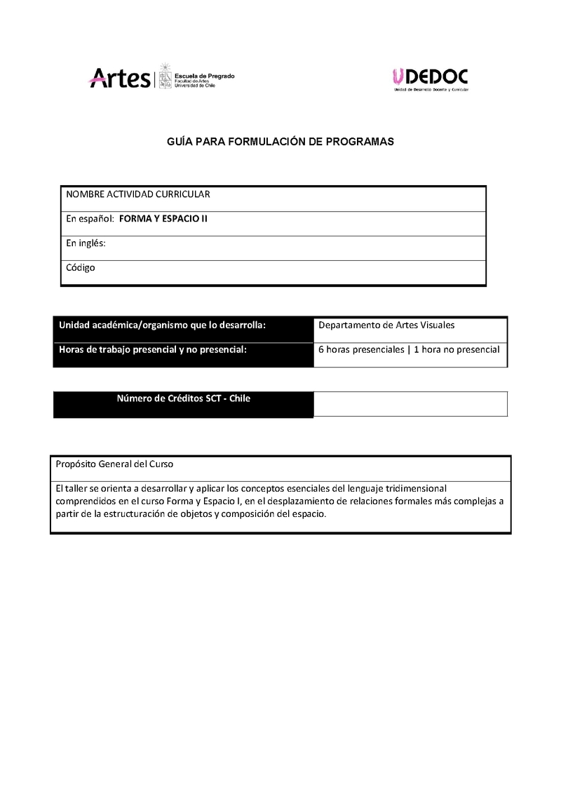 | Descripción | Programa segundo semestre Forma y espacio II | |