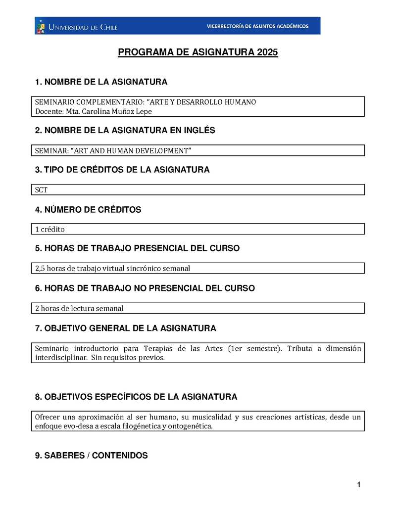 | Descripción | Seminario Introductorio "Arte y Desarrollo Humano" para de Terapias de las Artes y otras formaciones de interés. Ofrece una 1ra aproximación al ser humano, su musicalidad y sus creaciones artísticas, desde un enfoque evo-desa a escala filogénetica y ontogenética. |