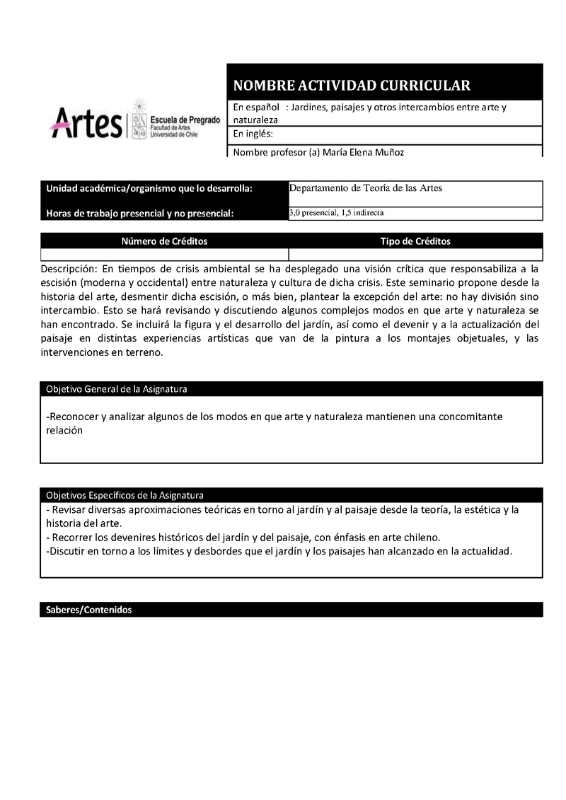 SEMI471-063-1 Seminario: Jardines, paisajes y otros intercambios entre arte y naturaleza 2025, Segundo Semestre