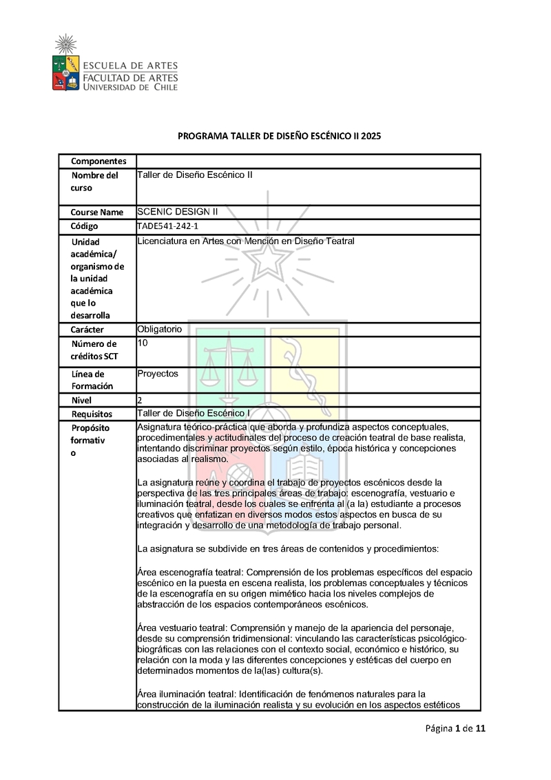 | Descripción | Programa Taller Diseño Escénico II 2025 Revisar Bibliografía y Filmografía |