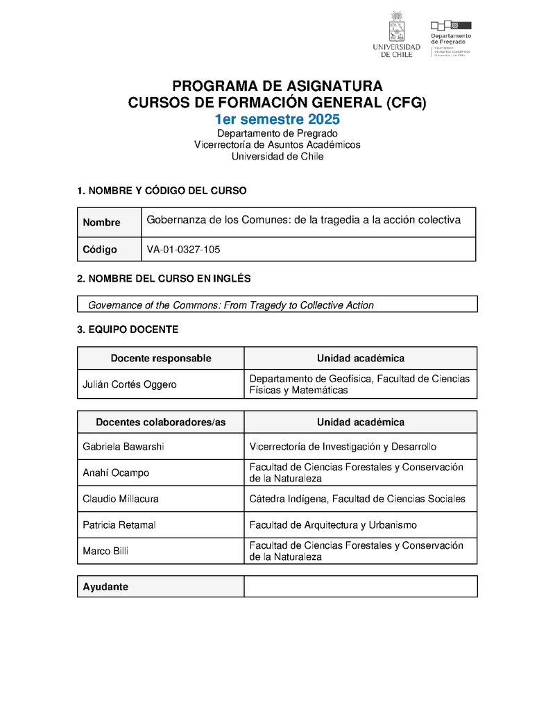 VA-01-0327-105-1 Gobernanza de los comunes: de la tragedia a la acción colectiva 2025, Primer Semestre