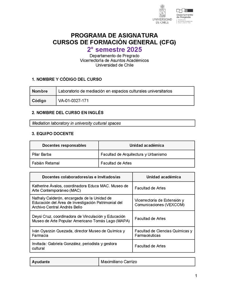 VA-01-0327-171-1 Laboratorio de mediación en espacios culturales universitarios 2025, Segundo Semestre
