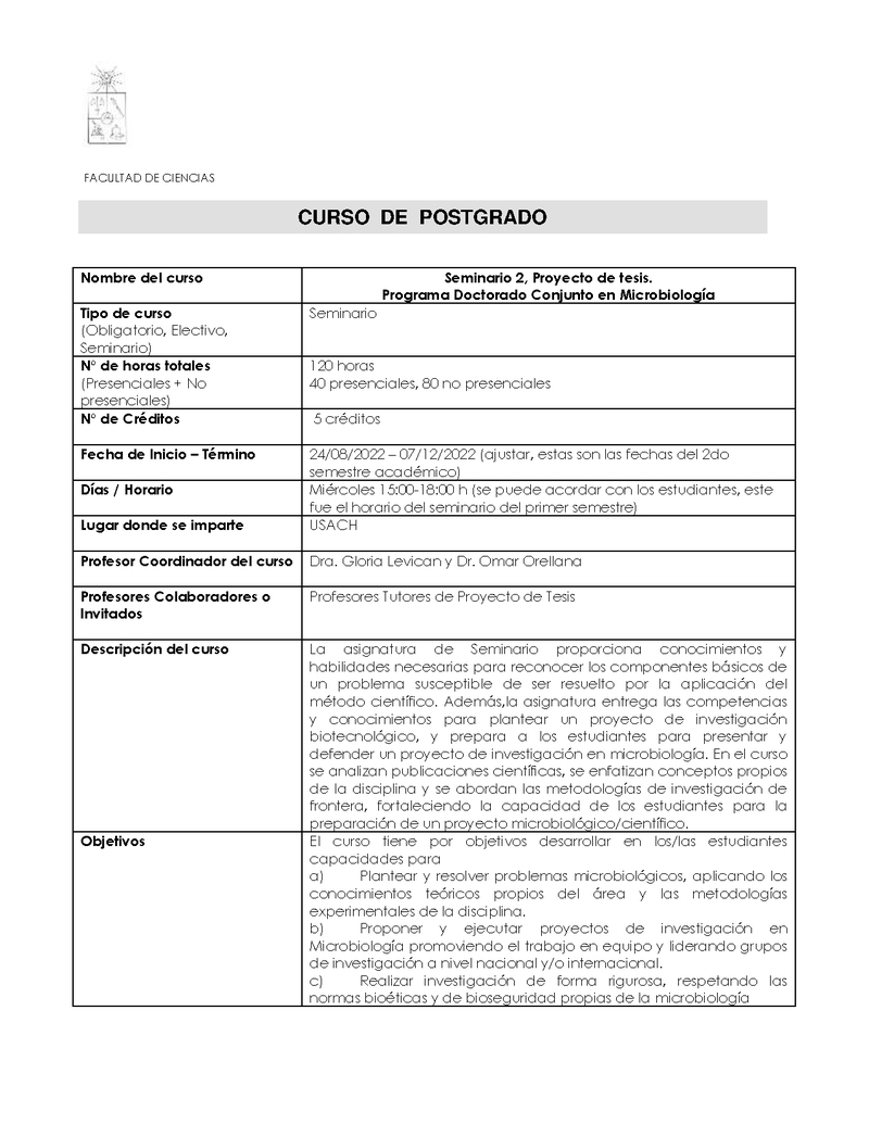 CS07DMIC0121-1 Seminario 2. Proy. de tesis. Doc. Conjunto en Microbiología (5) 2022, Segundo Semestre