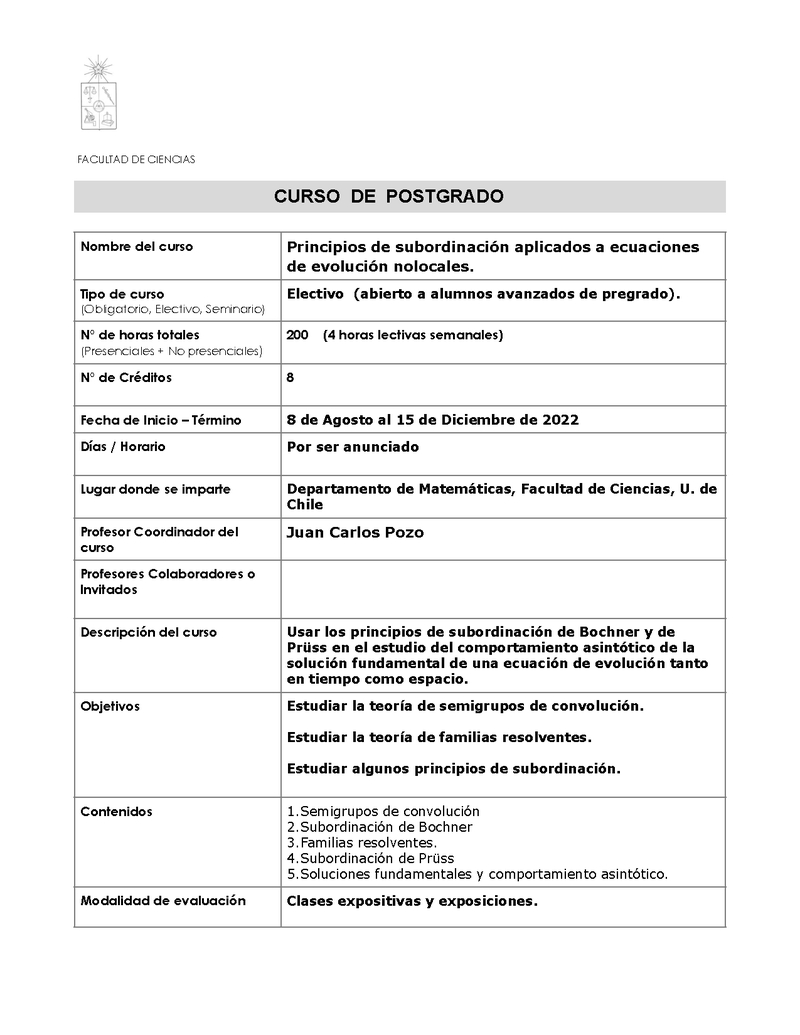 CS07MM08-1 Principios de subordinación aplicados a ecuaciones de evolución nolocales 2022, Segundo Semestre