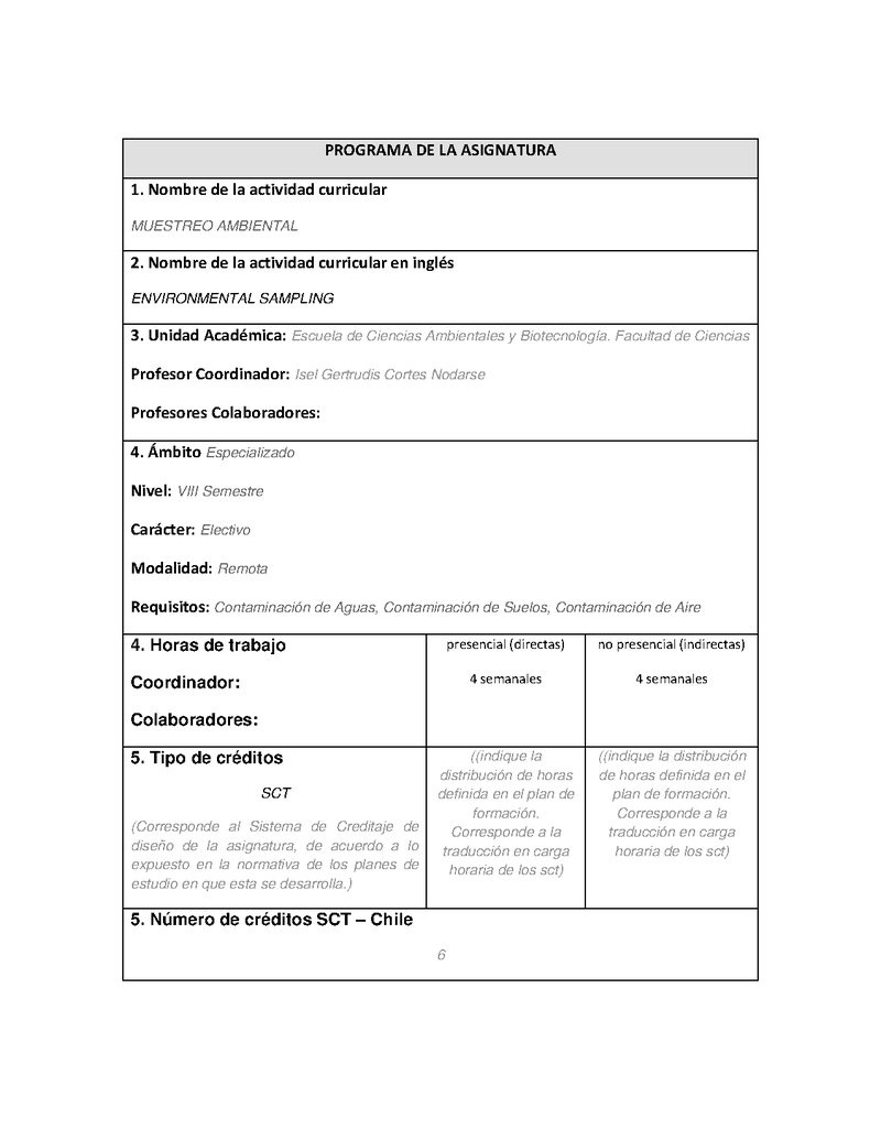 | Descripción | Programa del curso Muestreo Ambiental, 2023. | |