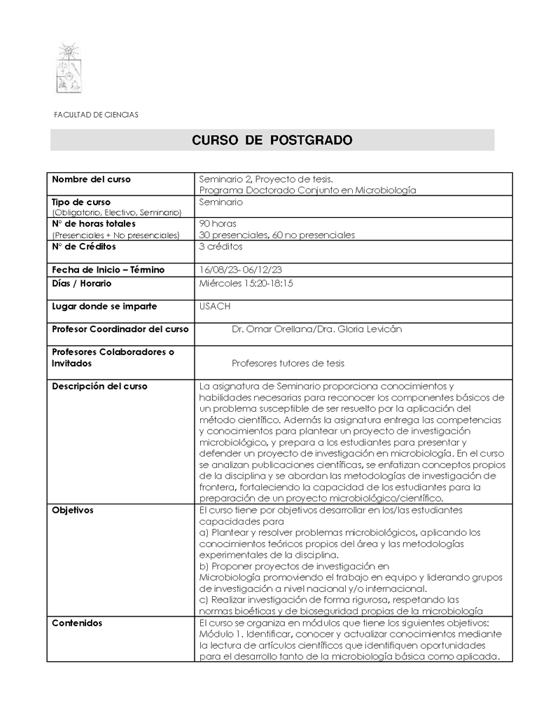 CS07DMIC0122-1 Seminario 2. Proy. de tesis. Doc. Conjunto en Microbiología (3) 2023, Segundo Semestre