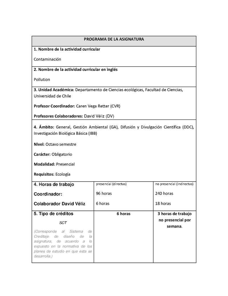 | Descripción | Programa Curso Contaminación | |