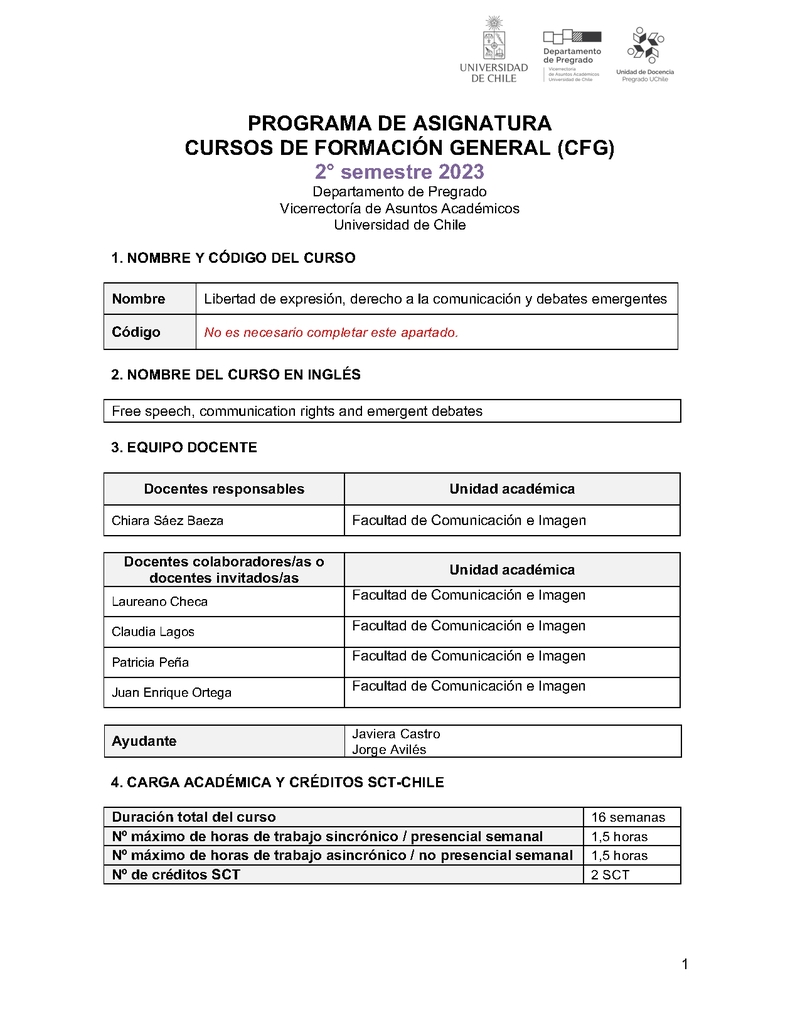 VA-01-0327-157-1 Libertad de expresión, derecho a la comunicación y debates emergentes 2023, Segundo Semestre