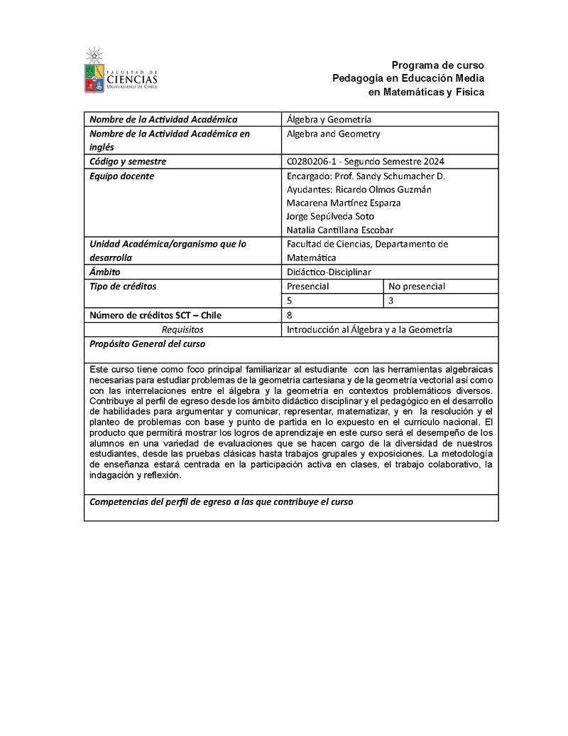 | Descripción | Programa actualizado del curso Algebra y geometría 2024 | |