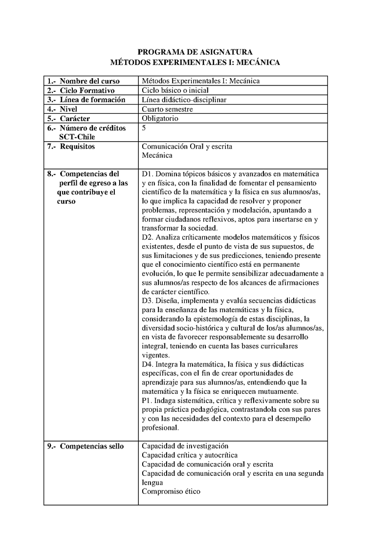| Descripción | Programa Métodos Experimentales I - Mecánica | |