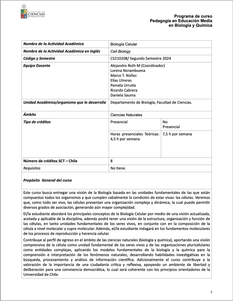 | Descripción | Programa del Curso de Biología Celular. Segundo Semestre 2024 Código de Perusall: ROTH-YM7UK Enlace a Perusall |