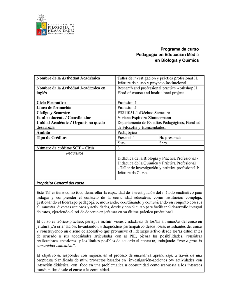 F52101049-1 Taller de Investigación y Práctica Profesional II: Jefatura de Curso y Proyecto Institucional 2024, Segundo Semestre