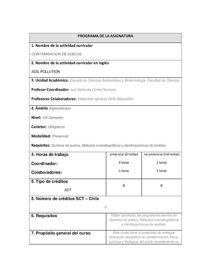 | Descripción | Programación curso Contaminación de Suelos 2024; actualizada. | |