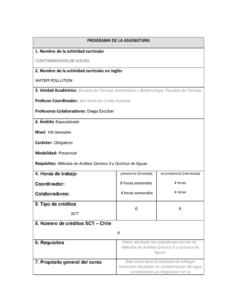 Descripción Estimados. Comparto la programación detallada y ajustada, nuevamente, del Curso Contaminación de Aguas 2024.