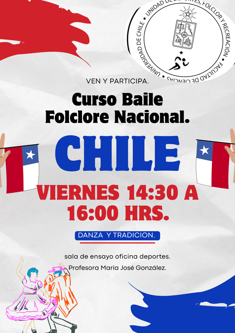 | Descripción | curso folclore nacional electricidad segundo semestre. facultad de ciencias. profesora Maria Jose gonzalez actividades rítmica motrices que ayudan al entendimiento y practica del folclore nacional tradicional y pueblos originarios. excelente ambiente de trabajo. |